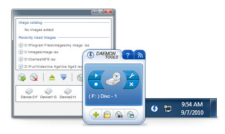 - Выполнение основных действий на рабочем столе Windows через удобный гаджет DAEMON Tools