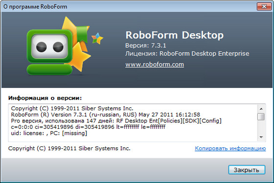 Скачать программу AI RoboForm Enterprise 7.3.1 Final (7,07 МБ):