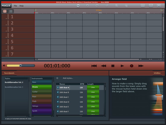MAGIX Music Maker Rock Edition 4 предоставляет все необходимое для создания своих собственных рок-творений. Программа содержит более 1000 совершенно новых звуков, гитарных риффов и звуковых эффектов. Реалистичное звучание инструментов и интуитивно понятный интерфейс поможет стать вам настоящей рок-звездой.