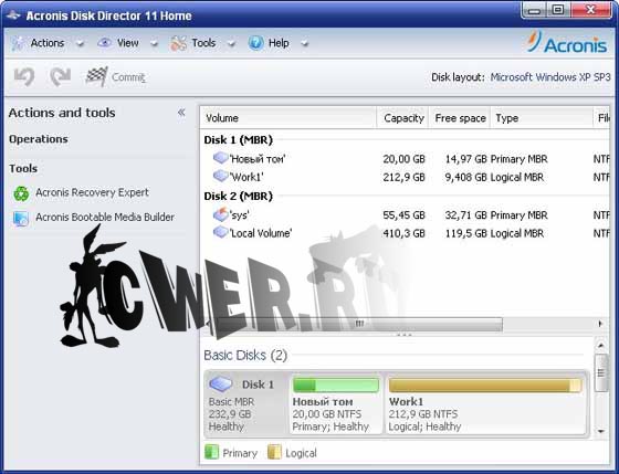 Acronis Disk Director 11 предоставляет вам мощные утилиты для управления жесткими дисками и разделами, которые обеспечат эффективную работу ваших рабочих станций. Acronis уже давно поддерживает операционные системы Microsoft, и данная версия полностью поддерживает платформу Windows 7, а также Windows Vista™ и Windows XP™. Вы можете проводить динамическое разбиение, объединение, изменение размеров, копирование и перемещение разделов непосредственно из среды Windows, сокращая непроизводительные простои. Теперь вы можете быстро выполнять задачи по модификации содержимого жесткого диска, включая восстановление важных областей данных на жестком диске, нахождение и/или извлечение информации, утраченной из-за различных программных или аппаратных сбоев или вирусной атаки.