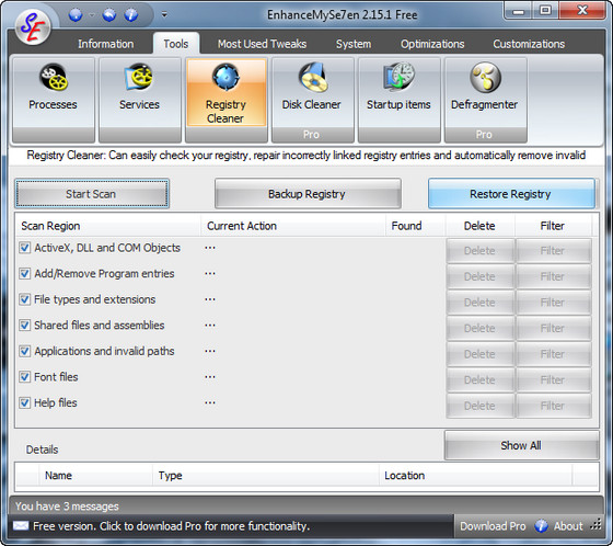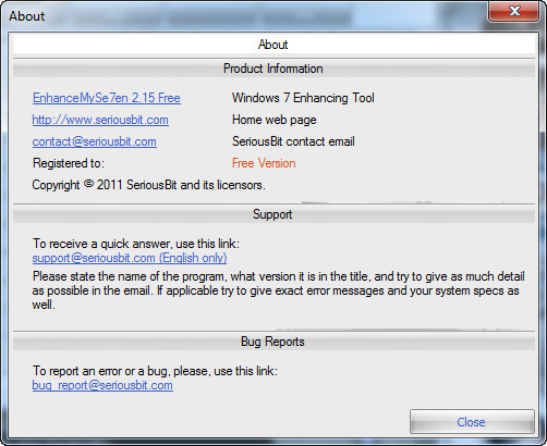 EnhanceMySe7en включает в себя менеджер автозагрузки, менеджер процессов, модуль очистки жесткого диска, дефрагментатор жесткого диска, "чистильщик" системного реестра, монитор жесткого диска (температура, время работы, серийный номер и т.п.), модуль настройки интернет-соединения, а также средства для быстрого доступа к "тонким" настройкам операционной системы.