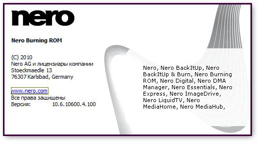Nero Burning ROM - самый свежий набор программного обеспечения цифрового мультимедиа и домашнего центра развлечений следующего поколения, которое пользуется наибольшим доверием в мире. Его характеризует передовая функциональность, благодаря которой наслаждаться цифровым мультимедиа так просто. Этот простой в использовании, но мощный набор мультимедиа дает вам свободу создавать, считывать, копировать, записывать, редактировать, совместно использовать и передавать данные в сети. Что бы это ни было — музыка, видео, фото или данные — наслаждайтесь ими и используйте совместно с родными и близкими когда угодно и где угодно. Ваша цифровая составляющая жизни еще никогда не была такой свободной, ощутимой и веселой, как с простым в использовании командным центром Nero StartSmart.