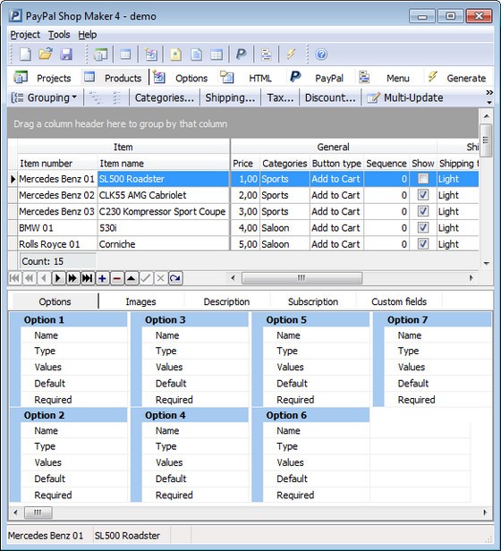 PayPal Shop Maker - программа, с помощью который вы сможете с легкостью создать интернет-магазин на основе платежной системы PayPal. Для использования этой программы от вас не потребуется знаний по интеграции системы PayPal на сайты. Вы сможете быстро и легко работать с информацией о продукции в этой программе и создавать PayPal-магазины со встроенной javascript корзиной, PayPal-кнопкой "Buy Now" или стандартной корзиной PayPal. Сгенерированные страницы для вашего магазина могут быть в форматах HTML, PHP или ASP, поэтому вы сможете их с легкостью загрузить на свой FTP-сервер, на котором находится ваш сайт. Вы также можете использовать базу данных MS Access с базами данных MySQL и ASP с PHP, Мгновенным Уведомлением об Оплате (IPN), Передачей Оплаченных Данных (PDT) и Цифровой Загрузкой Товара через ASP или PHP. Шаблон PayPal Shop Maker полностью настраиваемый. Таким образом, вы сможете с легкостью создать собственный дизайн интернет магазина, верстая шаблон в HTML и CSS.