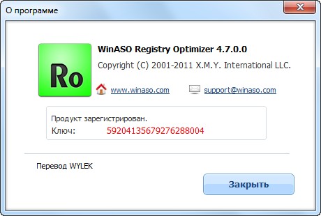 Скачать программу WinASO Registry Optimizer 4.7.0 Rus (6,62 МБ):
