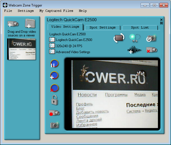 Webcam Zone Trigger – это мощная утилита для работы с веб-камерами. С ее помощью вы сможете захватывать изображение с любых веб камер или аналоговых устройств. Так же осуществляет контроль над объектом в нескольких точках. При обнаружении движения подаёт аудио сигналы, записывает видео, делает снимки.