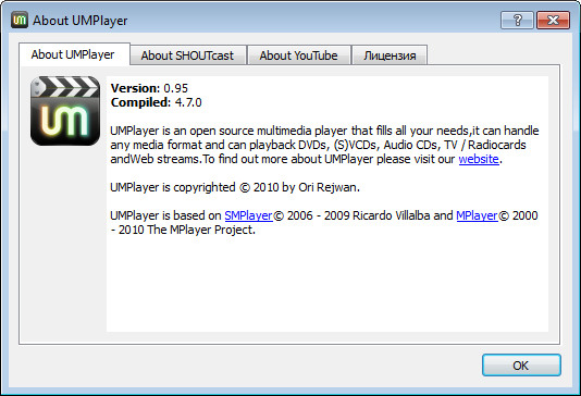 UMPlayer - кроссплатформенный мультимедиа проигрыватель, имеющий огромное количество вспомогательных возможностей и инструментов, более 270 встроенных кодеков и способного обрабатывать любые медиа форматы, воспроизводить аудио CD, DVD, (S) VCD, TV / Radio, YouTube и SHOUTcast потоки и даже неполные или поврежденные медиа файлы. Предоставляет списки популярных интернет-радиостанций и популярного видео на YouTube.