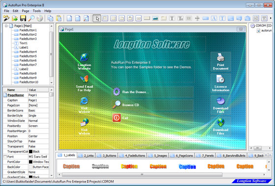 AutoRun Pro Enterprise II - это мощный визуальный инструмент для создания интерфейсов авто-загрузочных меню и презентаций профессионального уровня для CD/DVD. Это самый простой способ создания и редактирования таких интерфейсов в среде WYSIWYG (получаешь то, что видишь) - клик, перемещение и просмотр результата. Всё просто и быстро!