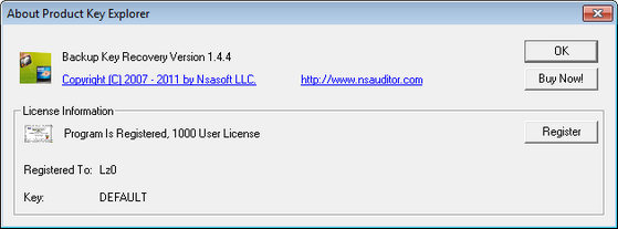 Backup Key Recovery - восстанавливает ключи для продуктов Windows, MS Office, SQL Server, Nero, линейки Adobe и еще более 2500 видов популярных программ, установленных на вашем диске. Превосходный инструмент для системных администраторов и сервиса предоставления услуг по восстановлению данных компьютера.