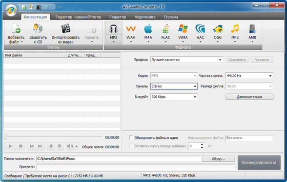 AVS Audio Converter - программа для преобразования аудио файлов из одного формата в другой. Поддерживает конвертирование WAV, OGG Vorbis, MP3, MP2, Microsoft ADPCM, WMA, VOX, AAC, M4A, AMR и других аудио форматов. До процесса преобразования программа определяет частоту, число каналов и другие параметры аудио файлов. Кроме этого, AVS Audio Converter позволяет задавать настройки параметров для MP3 и форматов OGG при преобразовании аудио-файлов и изменять информацию в тэгах. Дружественный и удобный интерфейс, расширенная поддержка форматов, которые предлагает AVS Audio Converter, превратят в удовольствие рутинную операцию конвертации аудио.