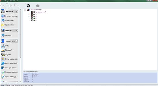 Anti-Trojan Elite - программа для очистки компьютера от таких вредоносных файлов, как трояны, кейлогеры и прочее. Сканирует не только жесткий диск (включая архивы ZIP CAB), но и смотрит на то, какие процессы запущены. Также располагает менеджером сетевых процессов, при помощи которого можно определить, где запущен нежелательный процесс. Кроме этого, вы можете просмотреть ключи и значения реестра и удалить подозрительные, починить Internet Explorer, оптимизировать работу Windows и многое другое. Помимо этого, в состав программы входят утилиты для блокирования подозрительных TCP-соединений и процессов, а также для исправлений ошибок в реестре, вызванных деятельностью вредоносных программ.
