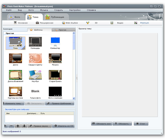 Photo Flash Maker Pro - программа для создания анимированного FLASH-слайдшоу из обычных цифровых фотографий. Данная утилита предоставляет более 200 эффектов перехода одной фотографии в другую, имеет различные темы внешнего оформления и позволяет устанавливать музыкальное сопровождение. В настройках утилиты можно указать продолжительность показа отдельной фотографии и время ее перехода в другое изображение.
