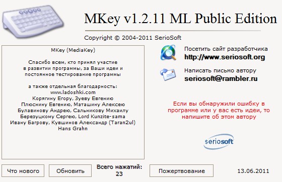 Скачать программу MKey 1.2.11 Final (1,30 МБ):