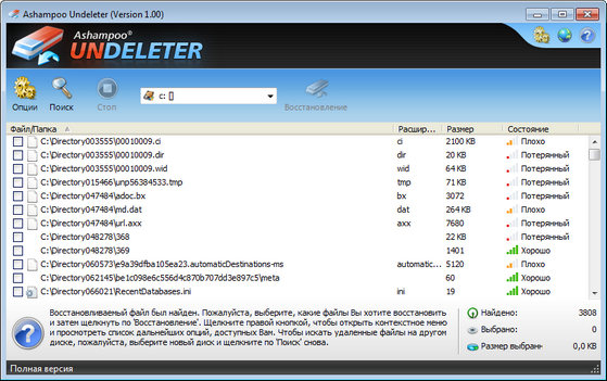 Если вы случайно удалили важный документ или любимую песню с компьютера, это не проблема. Просто используйте эффективные функции поиска Ashampoo Undeleter и программа найдет и покажет вам список всех удаленных файлов. В этом списке вы сможете увидеть состояние каждого файла - какие файлы могут быть восстановлены полностью или частично. Функции восстановления Ashampoo Undeleter обширны и не ограничиваются только жесткими дисками вашего компьютера. Удаленные файлы также могут быть обнаружены и восстановлены на внешних дисках USB, USB флэш-дисках и других носителях.