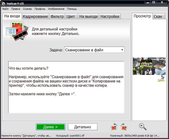 VueScan - программа для работы со сканерами HP, Minolta, Nikon, Polaroid, Epson, Canon и другими. Может работать с внутренней глубиной цвета. VueScan поддерживает автоматическую и ручную настройку большинства параметров и пакетный режим сканирования. Поддерживается более 500 моделей сканеров с определенным перевесом в сторону слайд-сканеров — Nikon, Minolta, Polaroid, Microtek, Epson. Предусмотрено автоматическое удаление дефектов изображения за счет канала инфракрасного сканирования и многопроходное сканирование с последующим усреднением результата — для подавления собственных шумов сканера. Имеются фильтры подавления зерна, нерезкого маскирования и удаления паразитного оттенка оригинала.