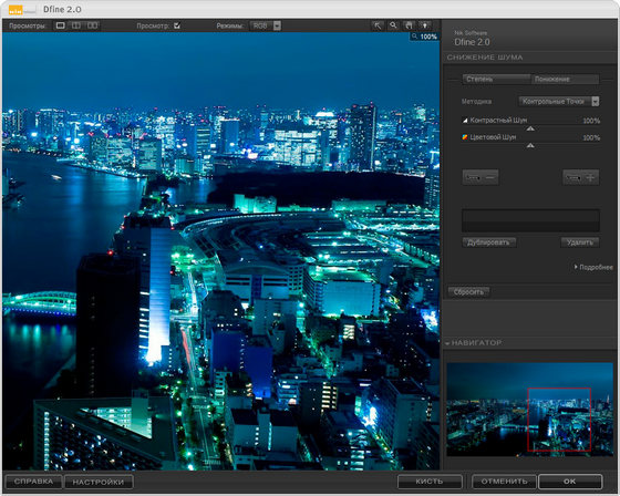 Также можно уменьшить шум, основываясь на диапазоне цветов, и, используя кисти, выделить участок на изображении, который нужно улучшить. Dfine поддерживает работу с графическими планшетами.