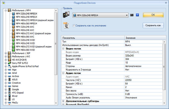 - MP4 файлы для форматов iPod/iPhone/PSP/BlackBerry