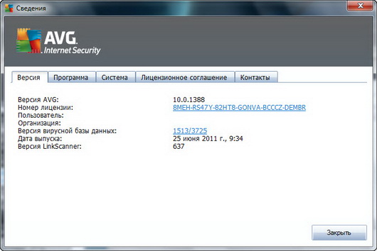 Скачать программу AVG Internet Security 2011 10.0.1388a3717 x32 (175,11 МБ):