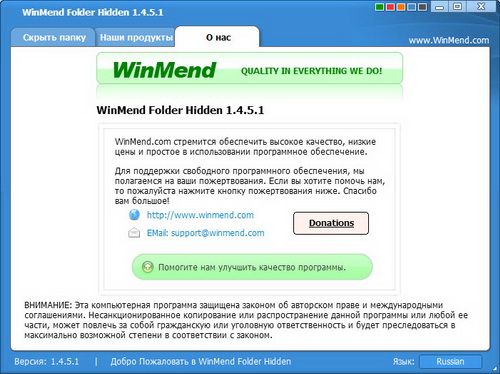 Скачать программу WinMend Folder Hidden 1.4.5.1 (2,2 МБ):