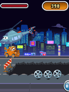 Сюжет игры посвящен приключениям гоночной машины по имени Лайтнинг МакКуин и его верного друга - побитого грузовика Мейтера. Вместе им предстоит поскитаться по миру, участвуя в мировом соревновании по автогонкам, а заодно – на время стать шпионами да раскрыть пару всемирных заговоров. Размеры экранов: 176х208, 176х220, 240х320, 320х240, 360х640.