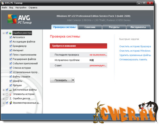 - Настройка системы. AVG PC Tuneup 2011 включает твикер с более, чем 280 различными опциями для быстрой и удобной настройки Windows под Ваши нужды и предпочтения.