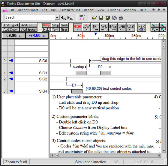 Функциональное моделирование (Functional Simulation) позволяет проверить правильность работы схемы. Для этих целей в пакете Libero используется широко известный продукт ModelSim. Кроме того, для генерации тестовых воздействий применяется продукт WaveFormer Lite фирмы SynaptiCAD. Трассировка проекта в выбранную пользователем ПЛИС осуществляется с помощью собственного продукта Designer, который также имеет средство анализа временных характеристик Designer's Timer tool, позволяющее провести статический анализ задержек сигналов на кристалле; средство размещения макросов ChipEdit; средство назначения контактов PinEdit. После размещения и трассировки проекта на кристалле с помощью пакета ModelSim выполняется временное моделирование (timing simulation).