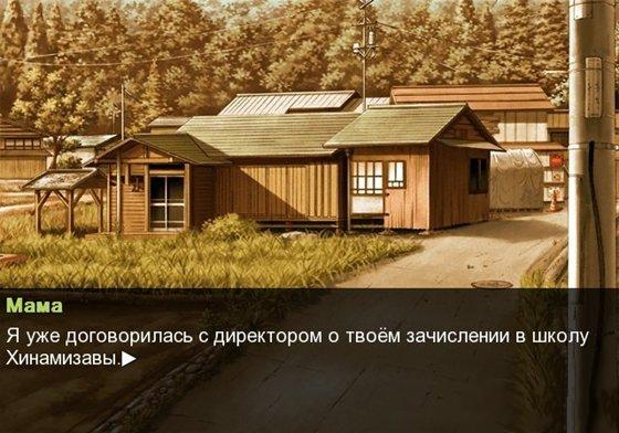 Шион же говорит, что у нее в Хинамидзаве учится сестра-близнец, приглашает его посетить школьный "игровой клуб" и прощается - она живет в соседнем городке. Наш герой добирается до нового дома и на следующее утро идет в местную школу. Там он узнает про загадочные убийства...