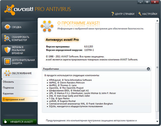Скачать программу avast! Free Antivirus 6.0.1203 Final (53,56 МБ):