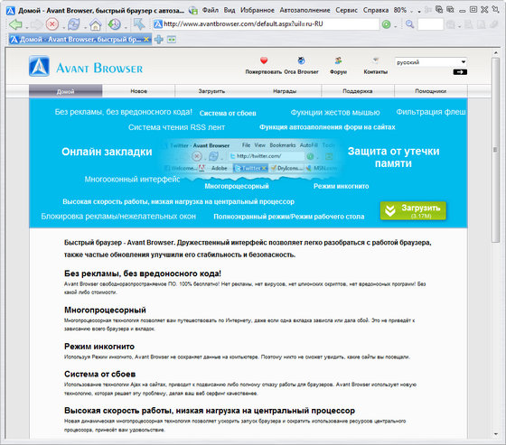 Скачать программу Avant Browser 2011 Build 27 Final (3,21 МБ):