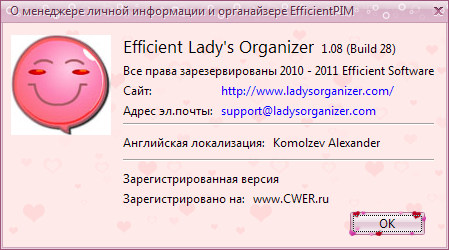 Скачать программу Efficient Lady's Organizer Pro 1.08 Build 28 (7,35 МБ):