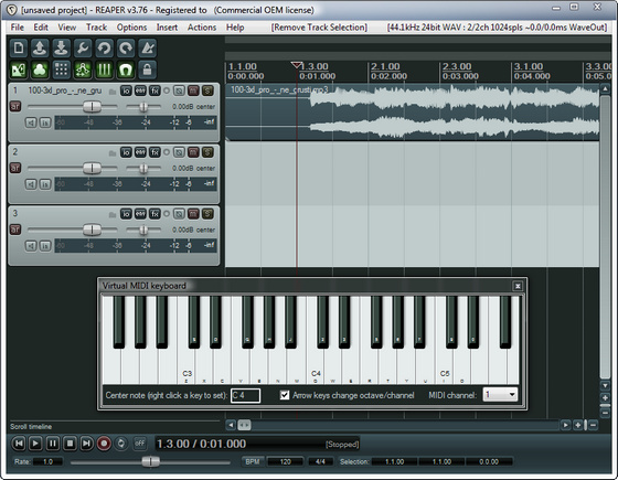 REAPER - компактный аудиоредактор для создания, редактирования и записи многоканальных аудиотреков с возможностью обработки каждого трека по отдельности. REAPER позволяет применять во время обработки аудио множество эффектов, поддерживает технологии ASIO, Kernel Streaming, WaveOut и DirectSound воспроизведение и запись. Поддерживает работу с файлами в форматах WAV, OGG, MP3, MIDI (чтение) и WAV, MIDI (запись), управление уровнем громкости, изменение границ трека, допускает многоуровневый откат/повтор выполненных операций и многое другое.