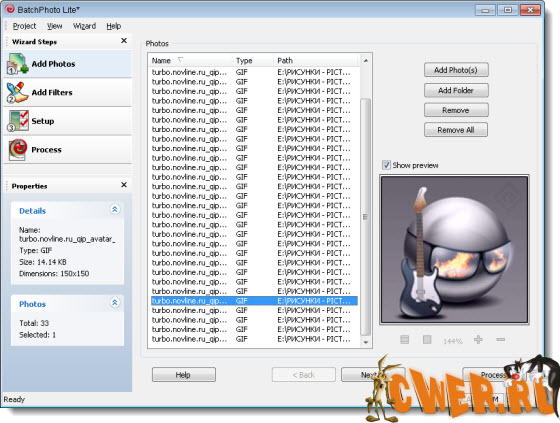 BatchPhoto Pro - помощь начинающему фотографу справиться с коррекцией фотографий и не задумываться об установке сложных в работе программ вроде фотошопа. По словам разработчика, всего за одну операцию можно легко подкорректировать или выправить картинку, применить эффекты (более 30), а также пакетно переименовать до нескольких тысяч файлов. Все просто - выделяете группу картинок и правите их одним махом все вместе.