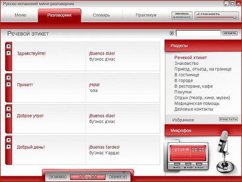 Около 1 500 озвученных фраз и слов, содержащихся в нем, помогут объясниться в самых распространенных и типичных ситуациях: в самолете и поезде, на границе, в гостинице, ресторане, магазине и т. д. Есть возможность прослушать звучание фраз, сравнить свое произношение с эталоном и сформировать собственный рабочий словарь самых нужных выражений.