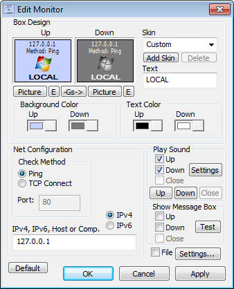 IP Monitor is a network monitoring software that allows you to verify the network connectivity of IP hosts on the Internet and LAN. The program periodically pings, or checks TCP ports on user specified computers (workstations, servers) or other network devices (routers). It is able to monitor IP and show notifications when the states of some computers change. You can also view and access shared folders, open web and ftp, ping, trace rout and sending messages. IP Monitor can generate status log files.