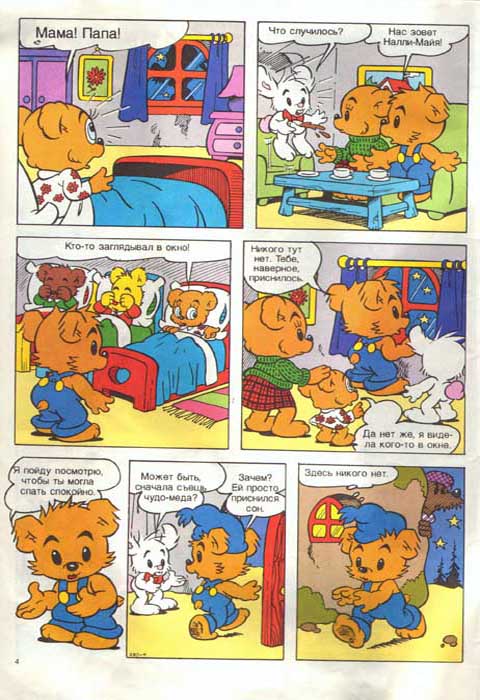 Самый сильный в мире медвежонок Бамси – герой шведских мультфильмов для самых маленьких зрителей и комиксов по мотивам мультфильмов. Каждое утро Бамси съедает банку чудо-меда, который умеет готовить только его бабушка. Мед делает Бамси очень сильным, но свою силу он использует только для того, чтобы помочь друзьям. А друзей у Бамси немало. Главный друг Бамси – кролик Попрыгунчик. Он очень боязливый, но с таким другом, как Бамси, бояться нечего. Попрыгунчик выращивает морковку, которую очень любит. Черепашкин изобретатель, он постоянно что-нибудь придумывает. Но одно его изобретение сильно усложняет общение с Черепашкиным – это чудо-будильник, который звонит каждый раз, когда Черепашкину пора есть или спать. Изобретатель строго соблюдает режим, и если звонок звенит, он ложиться спать или начинает закусывать, где бы не находился. В любой истории не обойтись и без отрицательного героя. В данном случае это Черный Волк. Волк живет в лесу и постоянно делает всякие пакости, вместо того, чтобы дружить с Бамси и остальными обитателями сказочного леса. Есть и злой Крез, мышь-бизнесмен, который постоянно хочет заработать на друзьях Бамси состояние. Но это ему не удается. Комиксы о Бамси в Швеции издавались с 1973 года. В России комиксы о Бамси появились в начале девяностых годов.
