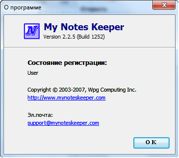 Программа My Notes Keeper предназначена для хранения самой различной информации (личных записей, e-mails, картинок, URL-ов, документов, контактов и паролей). Имеет встроенный текстовый редактор с поддержкой форматирования, возможностями вставки таблиц, изображений и специальных символов. Информация в программе представлена в виде записей. Благодаря древовидному интерфейсу, поиск нужной информации не занимает много времени. При необходимости данные, хранящиеся в программе, могут быть зашифрованы и защищены паролем.