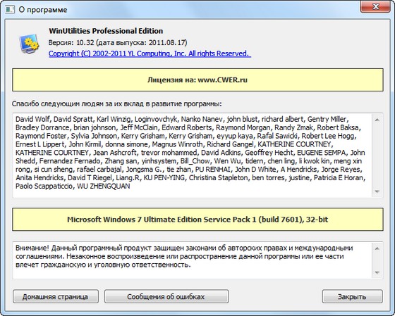 Скачать программу WinUtilities Pro 10.32 (7,29 МБ):