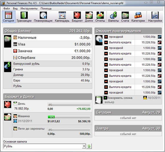 Personal Finances Professional - это простая и быстрая программа для учета Ваших финансов. Интуитивный интерфейс, функции Быстрый расход и авто заполнение помогут Вам вести учет финансов быстро и просто. Всего несколько минут потребуется для учета всех расходов за день. Вы всегда будете знать, куда действительно уходят деньги, и сможете более рационально планировать свой бюджет. Все Ваши финансы как на ладони - от общей картины до мельчайших деталей.