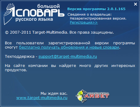 Кроме этого, теперь программа "Большой словарь русского языка" доступна и в бесплатном варианте, в котором без регистрации полностью доступны некоторые словари (в остальных словарях текст словарных статей будет скрыт до регистрации программы). В настоящий момент в бесплатном режиме доступен Толковый словарь В.И. Даля.
