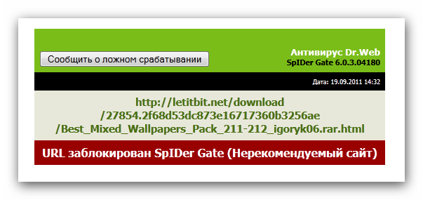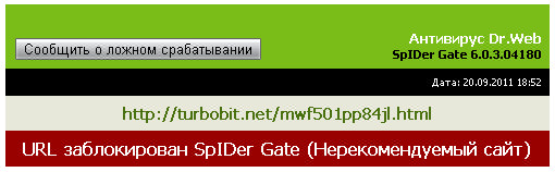 При переходе на страницу скачивания TURBOBIT.net и LetItBit.net, Dr.Web Security Space Pro 6 ругается, и говорит "URL заблокирован SpIDer Gate (Нерекомендуемый сайт".
