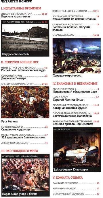 «Загадки истории» - спецвыпуск, который расскажет много нового об известных исторических персонажах, раскроет истинную подоплеку событий изменивших мир от древних времен до конца ХХ века. Статьи издания написаны не только журналистами, но и писателями-историками и учеными.