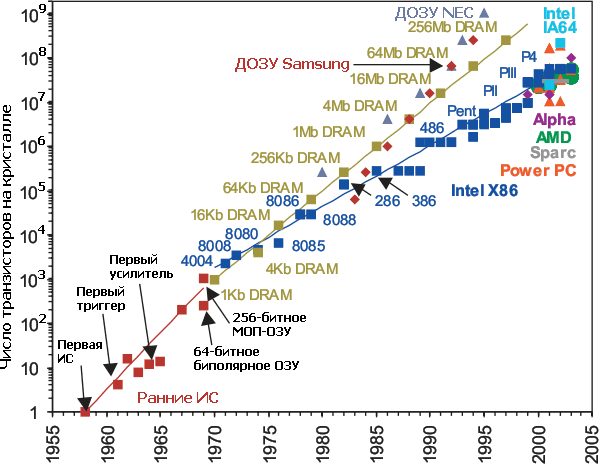 Эти чипы Мур использовал как доказательство геометрической прогрессии в микроэлектронике.
