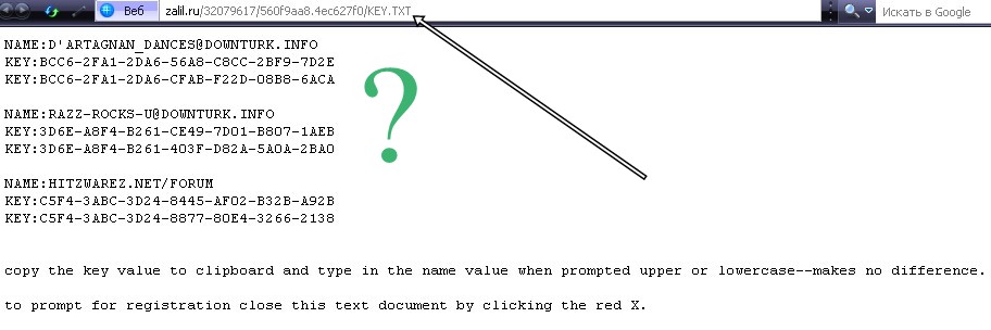 По ссылке скачались без проблем.Запустил игру,скопировал имя,ключ в окна.Игра чудесная.Большое спасибо.Деталь-имя игрока копируется с текстом после точки(D'Artagnan...info)