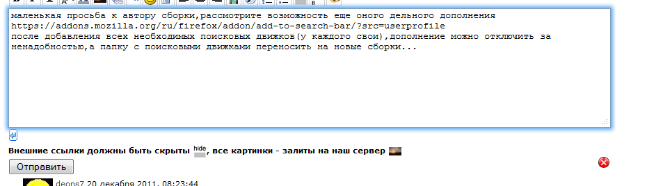 маленькая просьба к автору сборки,рассмотрите возможность еще оного дельного дополнения