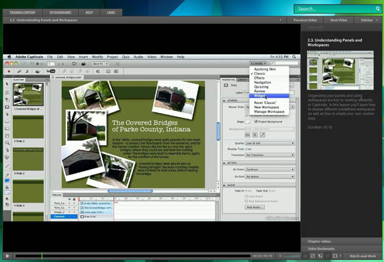 В этом курсе от сертифицированного Adobe преподавателя Sally Cox, вы узнаете, как использовать Captivate для создания эффективного контента, привлекающего и обучающего пользователей. В курсе охватывается каждый шаг процесса, начиная с планирования проектов. Вы узнаете, как использовать режимы записи Captivate для создания демонстраций, оцениваний и проверок; добавлять интерактивные элементы и аудио; публиковать проекты в различных медиа. Вы также ознакомитесь с новыми возможностями Captivate 5, включая полностью исправленный и оптимизированный интерфейс, стили объекта, шрифтоносители на слайде, эффекты анимации и многое другое. Независимо от вашего опыта дизайна.