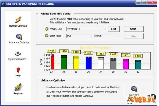 - производит online проверку ваших ISPs MTU и DSL (ADSL) оптимизируя скорость.