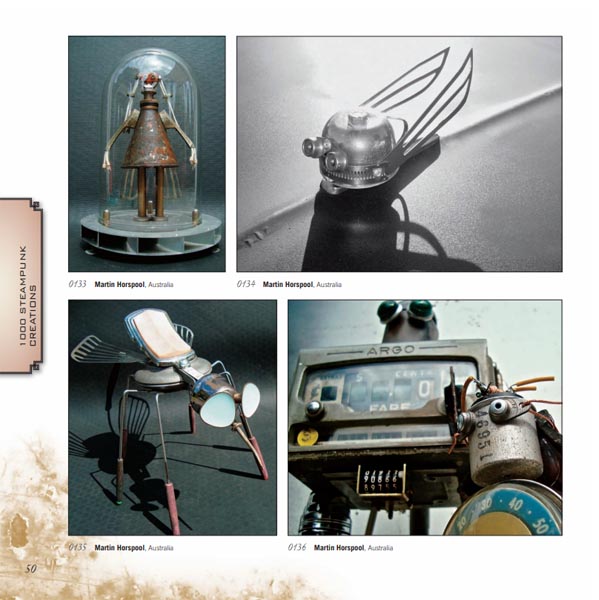 Отличная подборка работ мастеров со всего света. Это и скульптуры, и одежда, и аксессуары, и рисунки, и множество других занятных вещиц. Надеюсь, многим будет интересно открыть для себя новые имена. Если Вы незнакомы с таким направлением, как стимпанк, то эта книга является прекрасным путеводителем в его загадочный и многоликий мир. Желания попытаться вернуть чувство удивления, приключений и творчества, характерного для изобретателей и предпринимателей девятнадцатого века и объединить его с мастерством ремесленников, зачастую не хватает современному миру. Вы можете не принять стимпанк, но вы не сможете отмахнуться от него как от заурядного искусства.