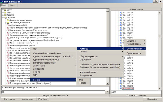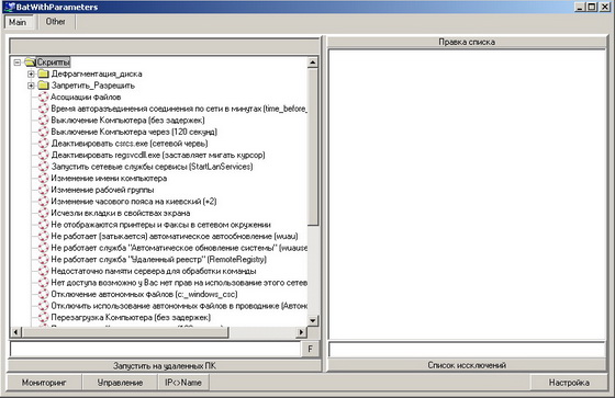 - Программа позволяет запускать удаленно и локально *.bat - файлы они же батники