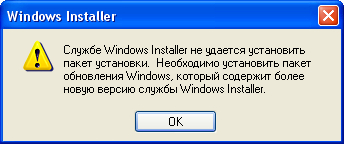 И к чему этот комментарий? Кто-то должен приехать к вам и обновить вашу ОС? Или погуглить за вас и скачать последнюю версию Windows Installer'а? Может это ваша задача? Думаю, да. Ни одна программа не допускает возможности того, что ваша ОС и ее компоненты не обновлялись с 2002 года.