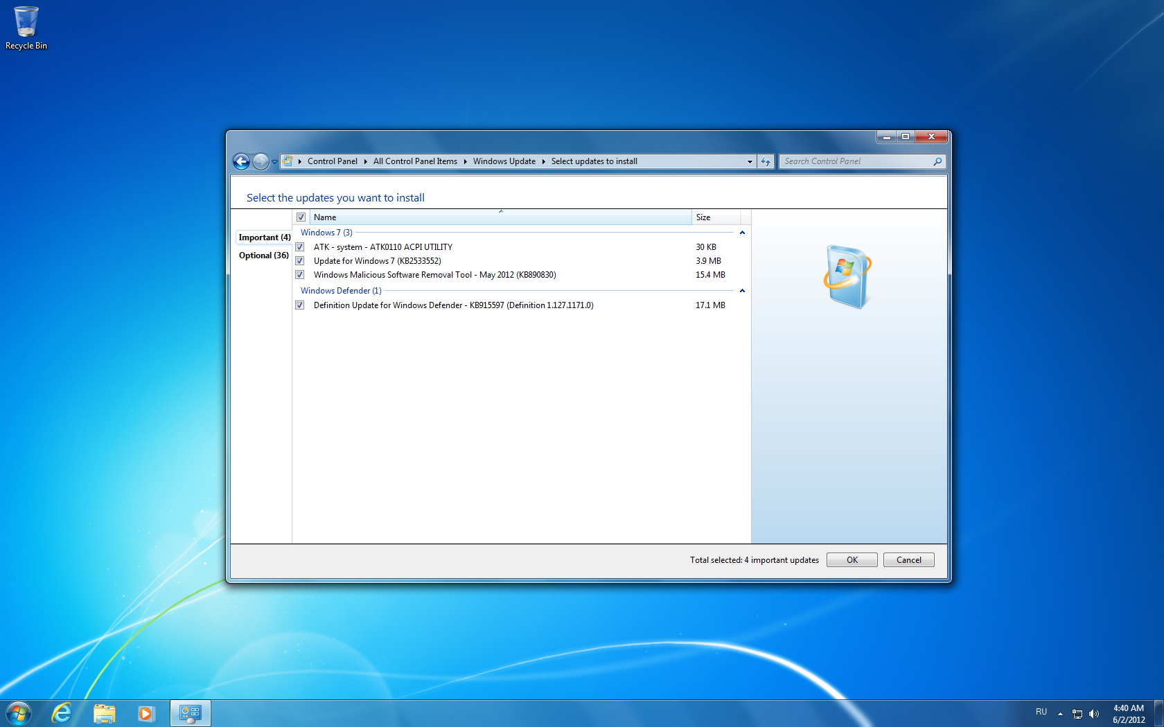 я понял что можно обновлять через Microsoft Update меня немного ввели в заблуждение отдельно выложенные обновления .