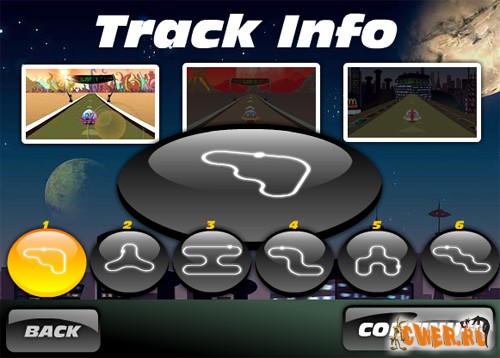 Весёлые флеш-гонки на летающих тарелках! В наличии различные трассы и пилоты.